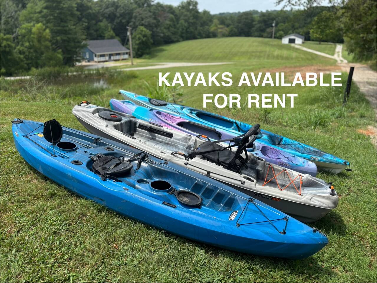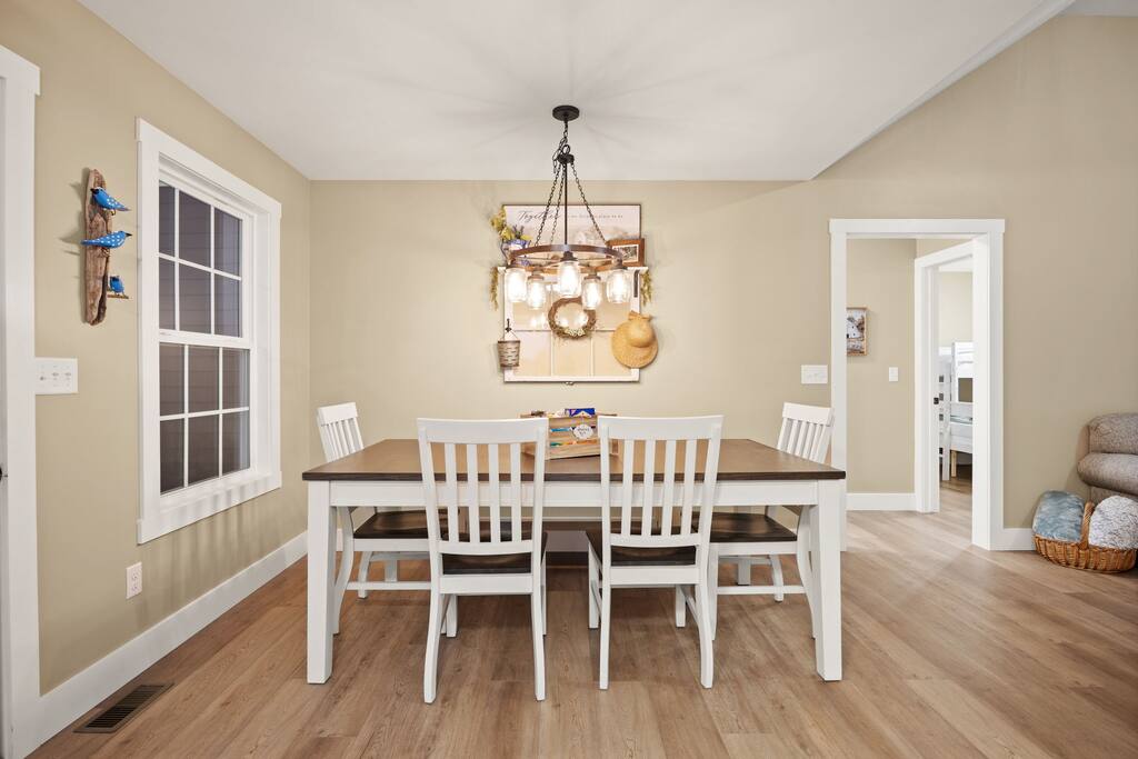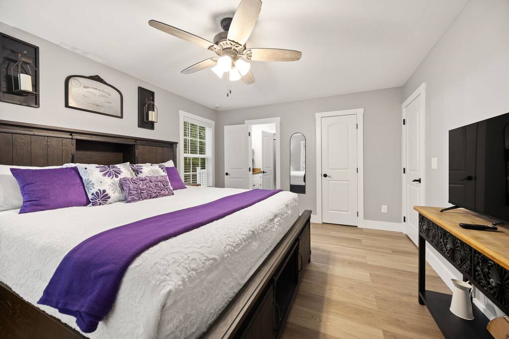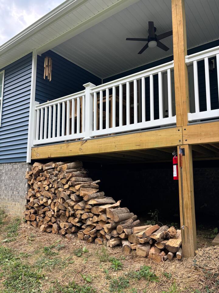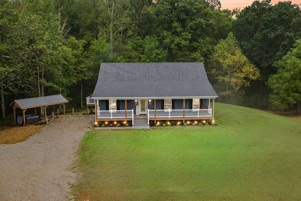 ⭑Master Bedroom:⭑ ✔ Spacious master with a plush king bed, perfect for restful nights after exploring the farm and Lake Cumberland. ✔ Walk-in closet, dresser, and soft cotton linens make it easy to settle in and feel at home. ✔Private attached bathroom with a classy and spacious walk-in shower. ⭑Second Bedroom:⭑ ✔ A charming queen bedroom offering plenty of natural light and a cozy night’s rest. ✔ Closet for storage, fresh bed linens, and extra pillows for added comfort. ⭑Third Bedroom:⭑ ✔ A family-friendly space with a sturdy Queen/TwinXL bunk bed, ideal for kids or extra guests. ✔ Closet for storage, comfortable linens, and relaxing décor designed for all ages. ⭑Living Room:⭑ ✔ Warm and inviting gathering space with a queen pullout couch for additional sleeping arrangements. ✔ Entertainment for all— 65 inch TV perfect for movie night or sports games, Bluetooth speaker, books, and board games for endless fun. ⭑Kitchen and Dining Area:⭑ ✔ Fully equipped modern kitchen featuring a Frigidaire refrigerator/freezer, stainless steel stove and oven, microwave, dishwasher, toaster, blender, and Keurig coffee maker. ✔ Stocked with cooking basics, pots, pans, spices, dishes, silverware, wine glasses, barbecue utensils, coffee, tea, creamer, sweeteners, and spices. ✔ Enjoy meals around the dining table or cook outside on the outdoor grill that overlooks the backyard and tree-line. ⭑Bathrooms:⭑ ✔ Two brand new bathrooms with sleek fixtures and fresh finishes. ✔ Amenities include a bathtub, hot water, shampoo, conditioner, body soap, hair dryer, and cleaning products. ⭑Outdoor Space:⭑ ✔ Relax on the house-length back porch while bird watching, or sip coffee on the covered front porch overlooking the farm. ✔ Backyard with outdoor furniture, dining area, sun loungers, fire pit, and a private patio. ✔ Gas BBQ grill for cookouts, plus cornhole and other life-size games provided. ✔Stargaze and listen to the crickets while relaxing around the fire pit. ✔ End your day in the private hot tub featuring a built-in Bluetooth sound system and lights. The hot tub area is custom built and nestled against the tree-line of the farm. ⭑Additional Amenities:⭑ ✔ Washer and dryer in unit, ironing board, hangers, and clothing storage. ✔ Pack ’n play, high chair, children’s books, toys, and dinnerware for families traveling with little ones. ✔ Single-level layout ✔ Registered pets welcome—bring your furry friends along! ⭑Safety and Security:⭑ ✔ Smoke alarm, carbon monoxide alarm, fire extinguisher, and first aid kit for peace of mind. ⭑Entertainment and Connectivity:⭑ ✔ Free Wi-Fi, TV, Bluetooth speakers, books, board games, and life-size games. ⭑Heating and Cooling:⭑ ✔ Central heating, air conditioning, and ceiling fans keep the home comfortable year-round. ⭑Parking and Facilities:⭑ ✔ Free parking on premises for multiple cars and boats. ✔ Single-level home with no interior stairs for easy access. ⭑Services:⭑ ✔ Self check-in via custom door code available. ✔ Pets allowed, and assistance animals are always welcome. Your stay at Lakin’ it Easy promises cozy comfort, peaceful convenience, and a memorable experience. Book now and enjoy your Lake Cumberland adventure in style! ⭑Conclusion⭑ This brand-new farmhouse offers the perfect balance of rustic charm and modern amenities. Whether you’re here for lake days, cozy nights by the fire pit, or relaxing soaks in the hot tub, this home has everything you need for a stress-free getaway. Don’t wait—reserve your stay today and make unforgettable memories in this one-of-a-kind farm setting!