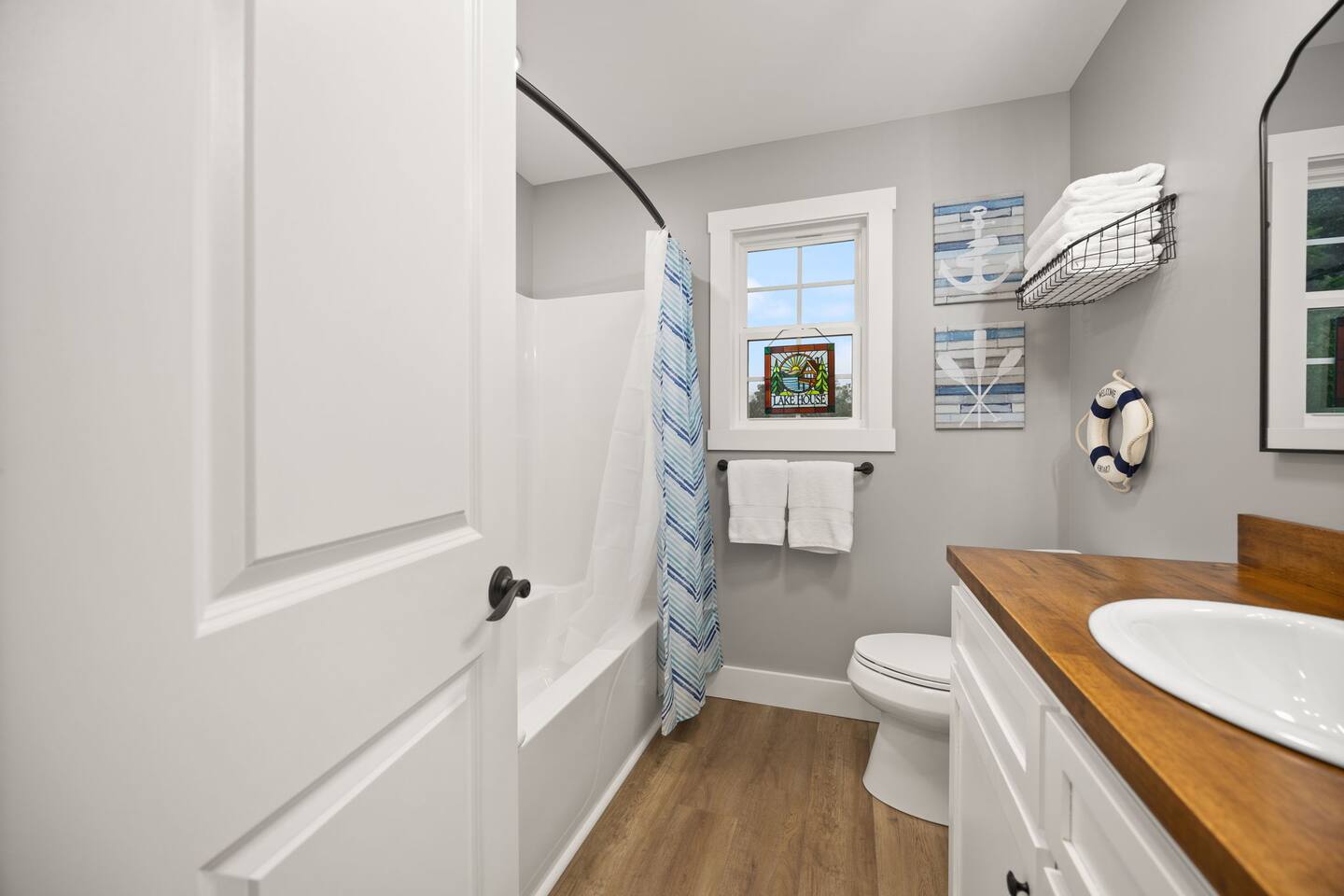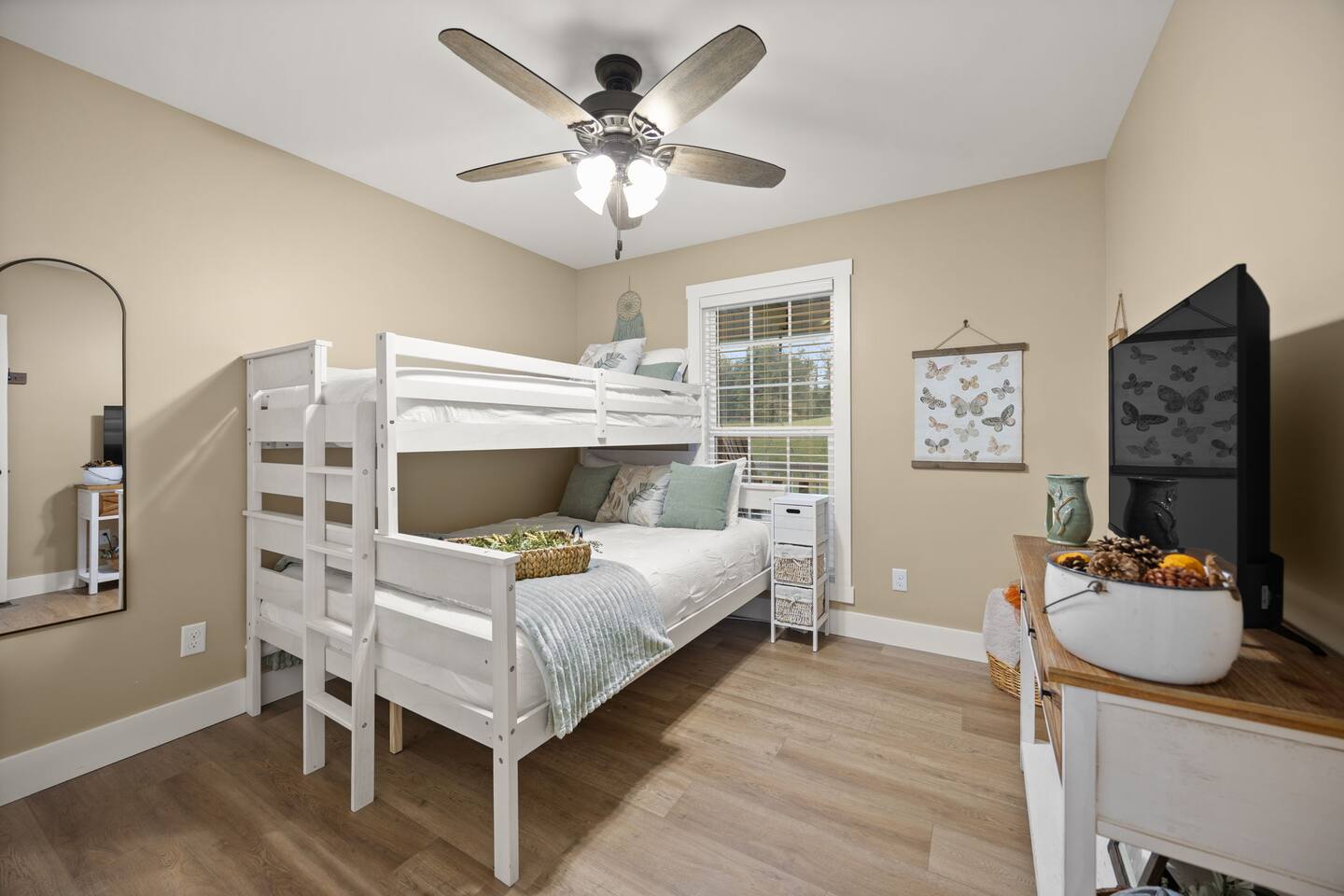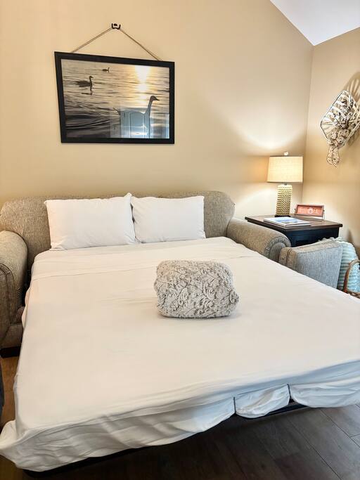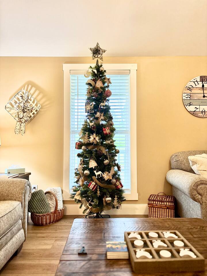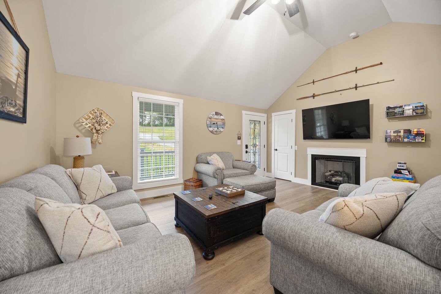 ⭑Master Bedroom:⭑ ✔ Spacious master with a plush king bed, perfect for restful nights after exploring the farm and Lake Cumberland. ✔ Walk-in closet, dresser, and soft cotton linens make it easy to settle in and feel at home. ✔Private attached bathroom with a classy and spacious walk-in shower. ⭑Second Bedroom:⭑ ✔ A charming queen bedroom offering plenty of natural light and a cozy night’s rest. ✔ Closet for storage, fresh bed linens, and extra pillows for added comfort. ⭑Third Bedroom:⭑ ✔ A family-friendly space with a sturdy Queen/TwinXL bunk bed, ideal for kids or extra guests. ✔ Closet for storage, comfortable linens, and relaxing décor designed for all ages. ⭑Living Room:⭑ ✔ Warm and inviting gathering space with a queen pullout couch for additional sleeping arrangements. ✔ Entertainment for all— 65 inch TV perfect for movie night or sports games, Bluetooth speaker, books, and board games for endless fun. ⭑Kitchen and Dining Area:⭑ ✔ Fully equipped modern kitchen featuring a Frigidaire refrigerator/freezer, stainless steel stove and oven, microwave, dishwasher, toaster, blender, and Keurig coffee maker. ✔ Stocked with cooking basics, pots, pans, spices, dishes, silverware, wine glasses, barbecue utensils, coffee, tea, creamer, sweeteners, and spices. ✔ Enjoy meals around the dining table or cook outside on the outdoor grill that overlooks the backyard and tree-line. ⭑Bathrooms:⭑ ✔ Two brand new bathrooms with sleek fixtures and fresh finishes. ✔ Amenities include a bathtub, hot water, shampoo, conditioner, body soap, hair dryer, and cleaning products. ⭑Outdoor Space:⭑ ✔ Relax on the house-length back porch while bird watching, or sip coffee on the covered front porch overlooking the farm. ✔ Backyard with outdoor furniture, dining area, sun loungers, fire pit, and a private patio. ✔ Gas BBQ grill for cookouts, plus cornhole and other life-size games provided. ✔Stargaze and listen to the crickets while relaxing around the fire pit. ✔ End your day in the private hot tub featuring a built-in Bluetooth sound system and lights. The hot tub area is custom built and nestled against the tree-line of the farm. ⭑Additional Amenities:⭑ ✔ Washer and dryer in unit, ironing board, hangers, and clothing storage. ✔ Pack ’n play, high chair, children’s books, toys, and dinnerware for families traveling with little ones. ✔ Single-level layout ✔ Registered pets welcome—bring your furry friends along! ⭑Safety and Security:⭑ ✔ Smoke alarm, carbon monoxide alarm, fire extinguisher, and first aid kit for peace of mind. ⭑Entertainment and Connectivity:⭑ ✔ Free Wi-Fi, TV, Bluetooth speakers, books, board games, and life-size games. ⭑Heating and Cooling:⭑ ✔ Central heating, air conditioning, and ceiling fans keep the home comfortable year-round. ⭑Parking and Facilities:⭑ ✔ Free parking on premises for multiple cars and boats. ✔ Single-level home with no interior stairs for easy access. ⭑Services:⭑ ✔ Self check-in via custom door code available. ✔ Pets allowed, and assistance animals are always welcome. Your stay at Lakin’ it Easy promises cozy comfort, peaceful convenience, and a memorable experience. Book now and enjoy your Lake Cumberland adventure in style! ⭑Conclusion⭑ This brand-new farmhouse offers the perfect balance of rustic charm and modern amenities. Whether you’re here for lake days, cozy nights by the fire pit, or relaxing soaks in the hot tub, this home has everything you need for a stress-free getaway. Don’t wait—reserve your stay today and make unforgettable memories in this one-of-a-kind farm setting!