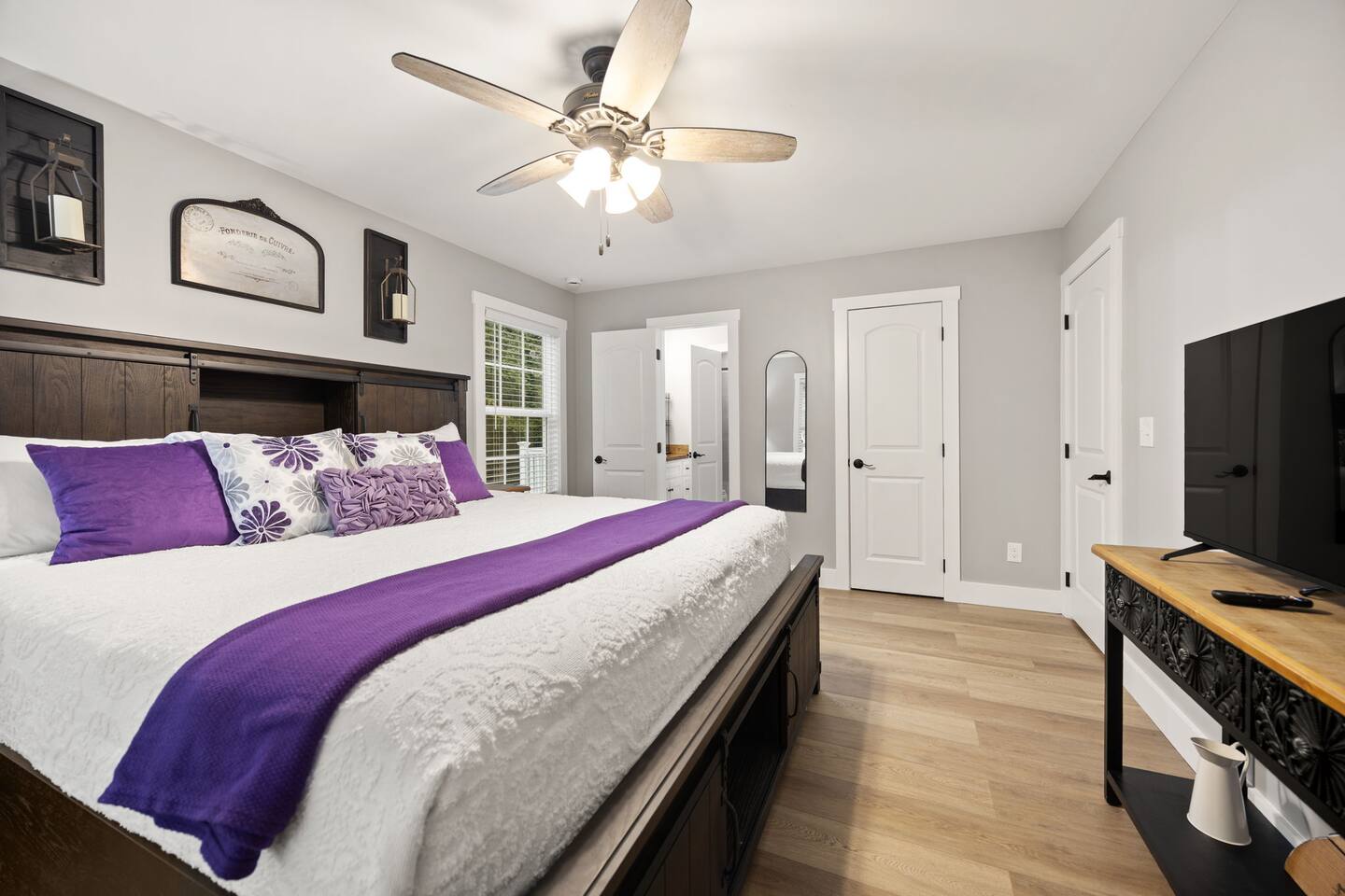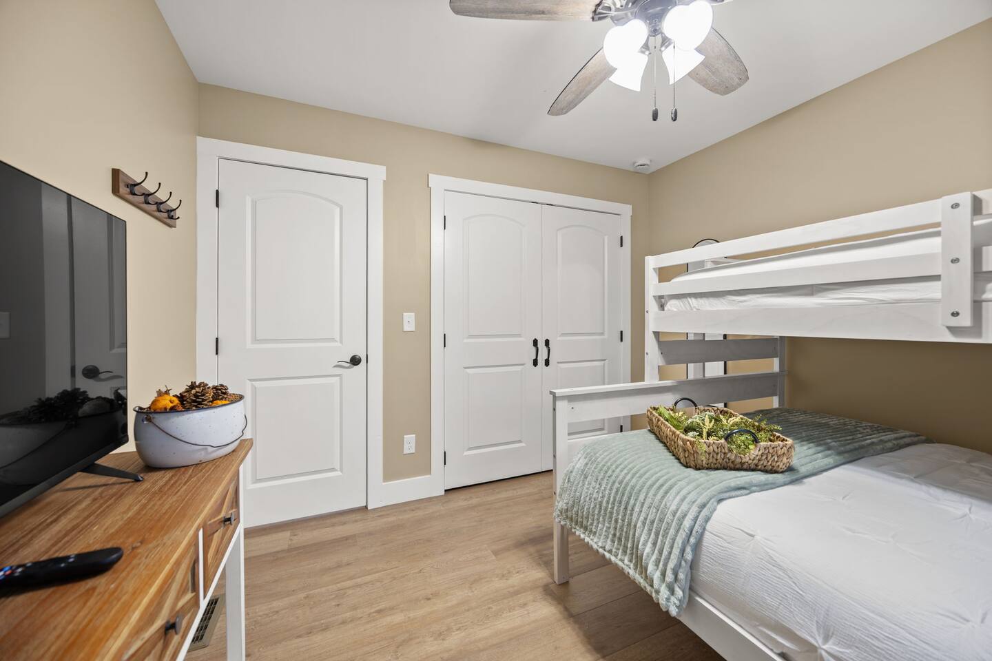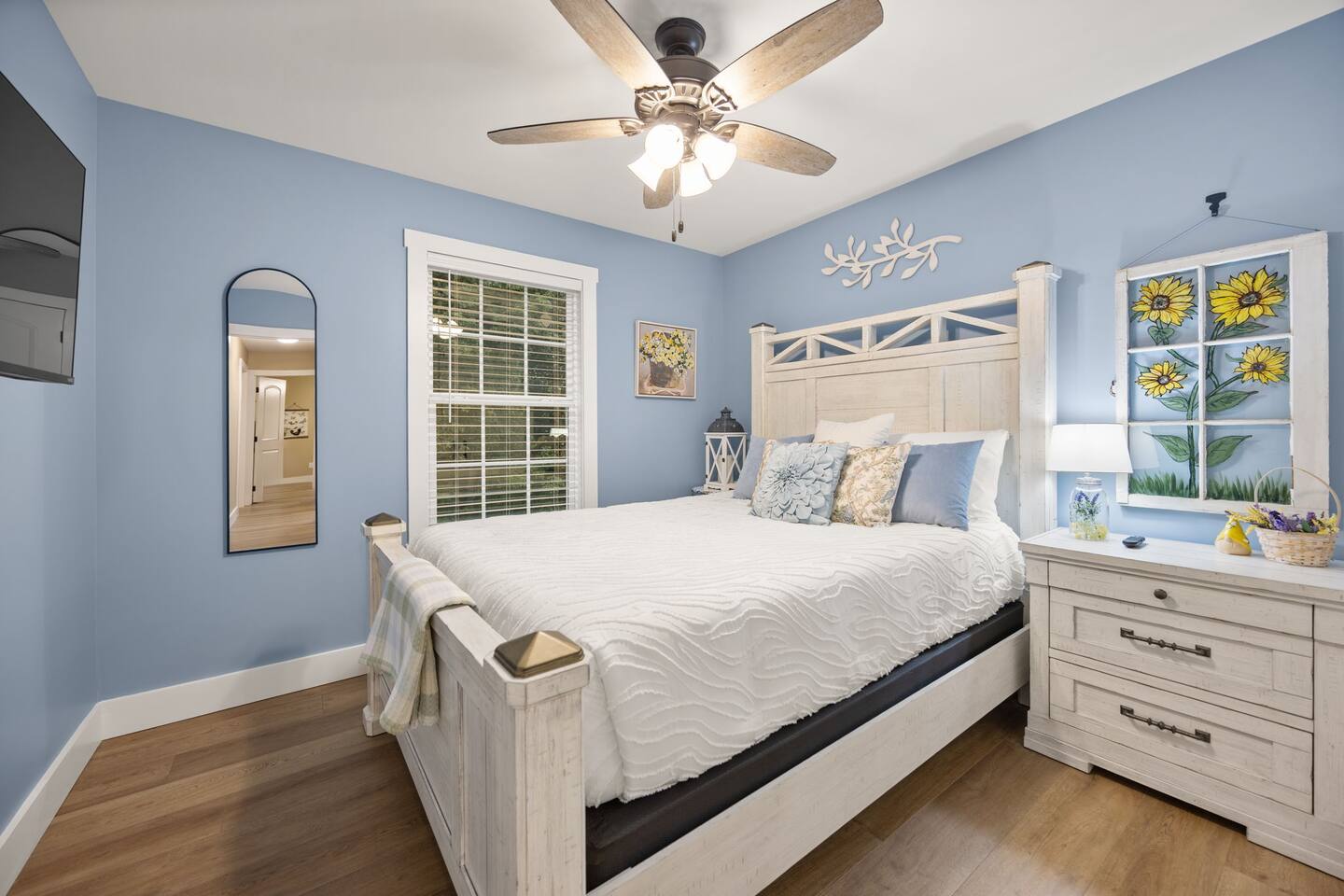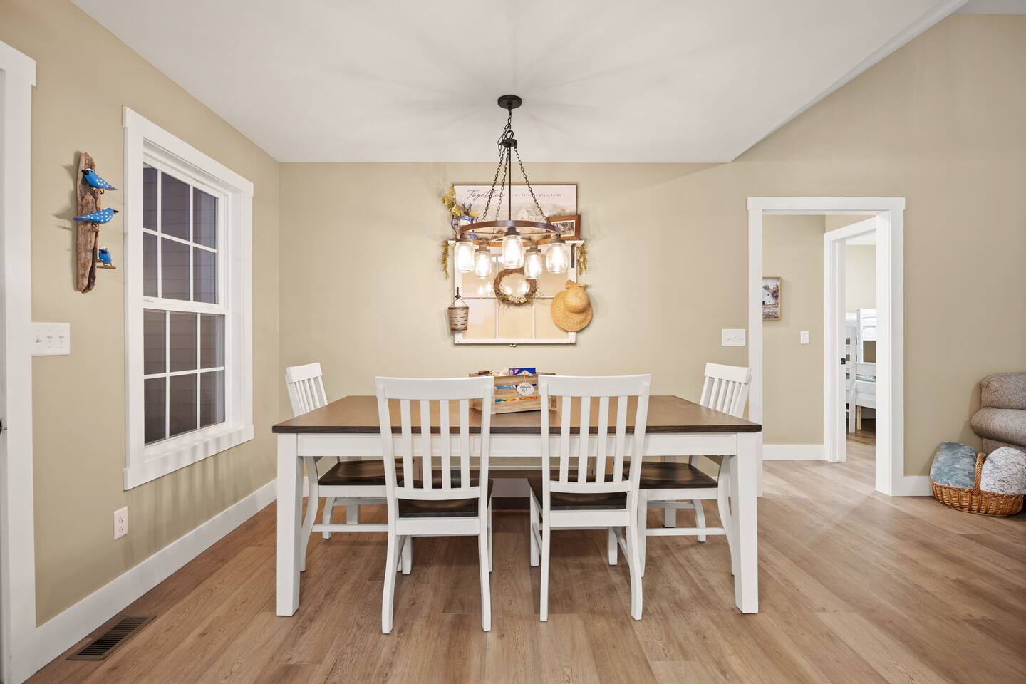 ⭑Master Bedroom:⭑ ✔ Spacious master with a plush king bed, perfect for restful nights after exploring the farm and Lake Cumberland. ✔ Walk-in closet, dresser, and soft cotton linens make it easy to settle in and feel at home. ✔Private attached bathroom with a classy and spacious walk-in shower. ⭑Second Bedroom:⭑ ✔ A charming queen bedroom offering plenty of natural light and a cozy night’s rest. ✔ Closet for storage, fresh bed linens, and extra pillows for added comfort. ⭑Third Bedroom:⭑ ✔ A family-friendly space with a sturdy Queen/TwinXL bunk bed, ideal for kids or extra guests. ✔ Closet for storage, comfortable linens, and relaxing décor designed for all ages. ⭑Living Room:⭑ ✔ Warm and inviting gathering space with a queen pullout couch for additional sleeping arrangements. ✔ Entertainment for all— 65 inch TV perfect for movie night or sports games, Bluetooth speaker, books, and board games for endless fun. ⭑Kitchen and Dining Area:⭑ ✔ Fully equipped modern kitchen featuring a Frigidaire refrigerator/freezer, stainless steel stove and oven, microwave, dishwasher, toaster, blender, and Keurig coffee maker. ✔ Stocked with cooking basics, pots, pans, spices, dishes, silverware, wine glasses, barbecue utensils, coffee, tea, creamer, sweeteners, and spices. ✔ Enjoy meals around the dining table or cook outside on the outdoor grill that overlooks the backyard and tree-line. ⭑Bathrooms:⭑ ✔ Two brand new bathrooms with sleek fixtures and fresh finishes. ✔ Amenities include a bathtub, hot water, shampoo, conditioner, body soap, hair dryer, and cleaning products. ⭑Outdoor Space:⭑ ✔ Relax on the house-length back porch while bird watching, or sip coffee on the covered front porch overlooking the farm. ✔ Backyard with outdoor furniture, dining area, sun loungers, fire pit, and a private patio. ✔ Gas BBQ grill for cookouts, plus cornhole and other life-size games provided. ✔Stargaze and listen to the crickets while relaxing around the fire pit. ✔ End your day in the private hot tub featuring a built-in Bluetooth sound system and lights. The hot tub area is custom built and nestled against the tree-line of the farm. ⭑Additional Amenities:⭑ ✔ Washer and dryer in unit, ironing board, hangers, and clothing storage. ✔ Pack ’n play, high chair, children’s books, toys, and dinnerware for families traveling with little ones. ✔ Single-level layout ✔ Registered pets welcome—bring your furry friends along! ⭑Safety and Security:⭑ ✔ Smoke alarm, carbon monoxide alarm, fire extinguisher, and first aid kit for peace of mind. ⭑Entertainment and Connectivity:⭑ ✔ Free Wi-Fi, TV, Bluetooth speakers, books, board games, and life-size games. ⭑Heating and Cooling:⭑ ✔ Central heating, air conditioning, and ceiling fans keep the home comfortable year-round. ⭑Parking and Facilities:⭑ ✔ Free parking on premises for multiple cars and boats. ✔ Single-level home with no interior stairs for easy access. ⭑Services:⭑ ✔ Self check-in via custom door code available. ✔ Pets allowed, and assistance animals are always welcome. Your stay at Lakin’ it Easy promises cozy comfort, peaceful convenience, and a memorable experience. Book now and enjoy your Lake Cumberland adventure in style! ⭑Conclusion⭑ This brand-new farmhouse offers the perfect balance of rustic charm and modern amenities. Whether you’re here for lake days, cozy nights by the fire pit, or relaxing soaks in the hot tub, this home has everything you need for a stress-free getaway. Don’t wait—reserve your stay today and make unforgettable memories in this one-of-a-kind farm setting!